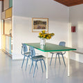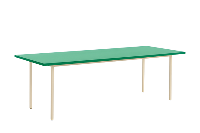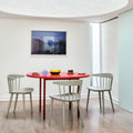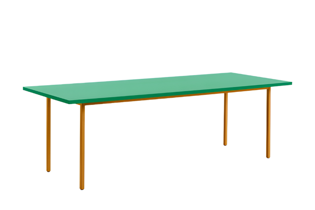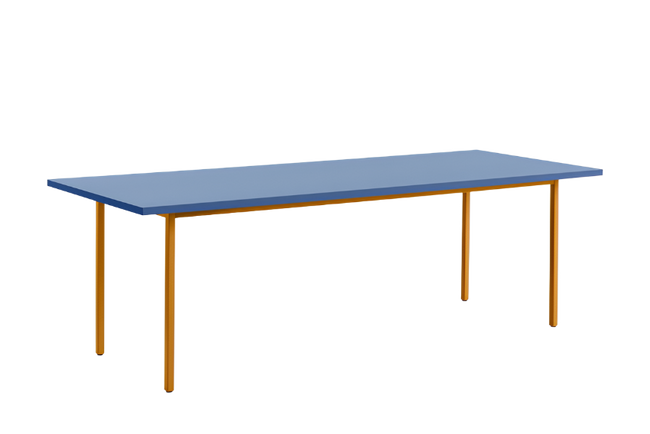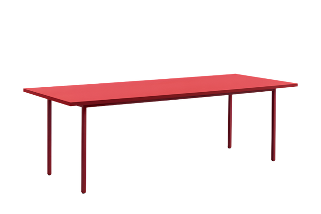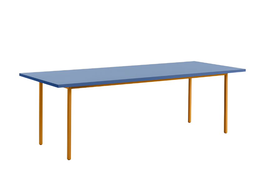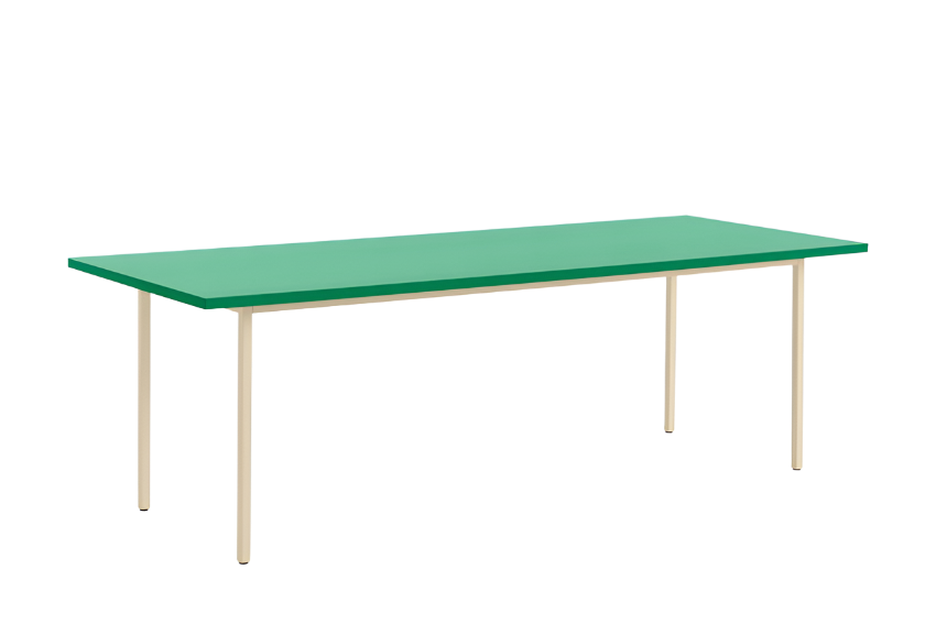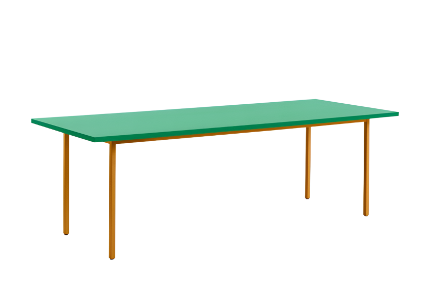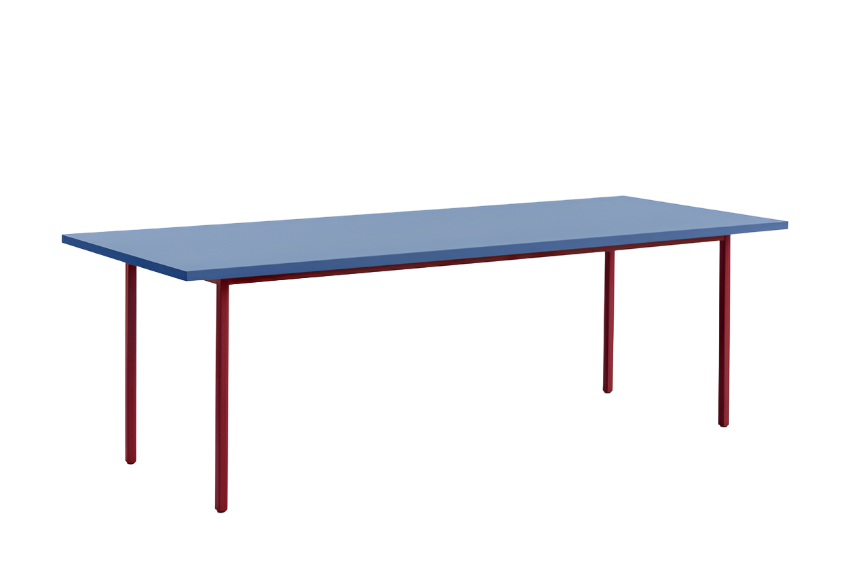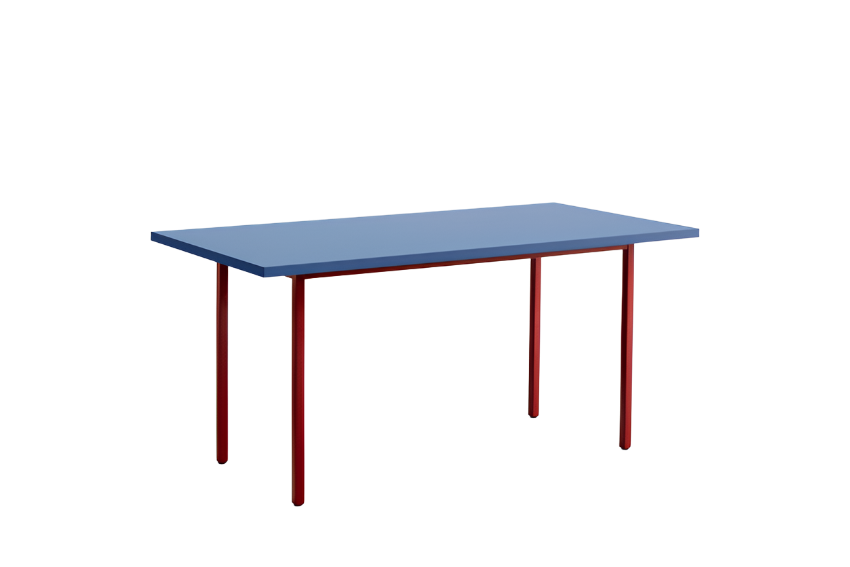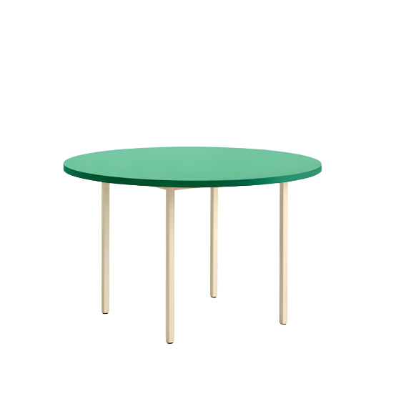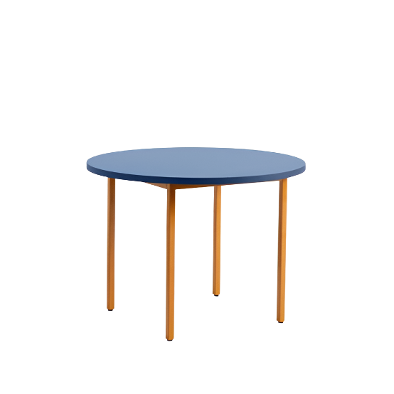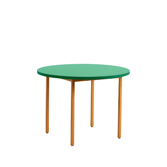 Materials used at their best, the Two-Colour table series is inspired by the contrasts and similarities in the materials used. Featuring steel tube legs for optimal strength and stability, the table surface is crafted in organic coloured Valchromat® – a unique kind of robust MDF material that is FSC-certified and features a water-based lacquer. Both components are united by the even thickness, creating a uniform silhouette that is disrupted by the contrasting elements of colour. Two-Colour is available in different shapes, sizes, and colour combinations, all offering a distinct personality that makes it ideal for a wide variety of environments, from cafés and restaurants to homes and office spaces.