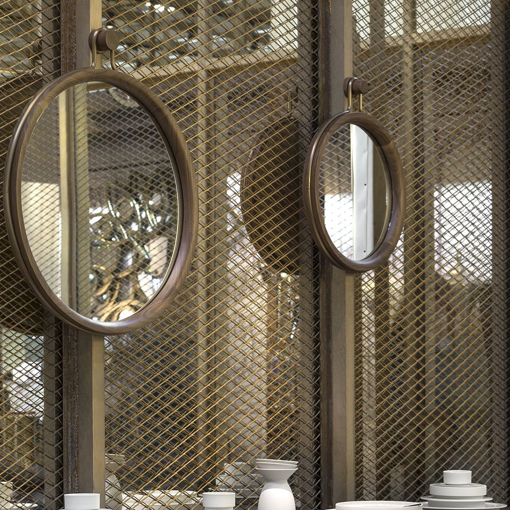 Solid wood frame, Stainless steel brass finish, Mirrored glass