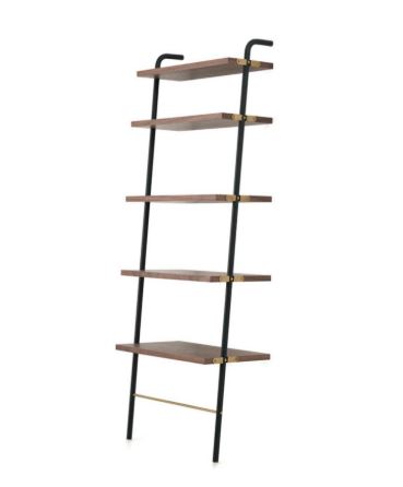 Black powder coated steel frame, brass plated stainless steel, veneer laminate shelves
