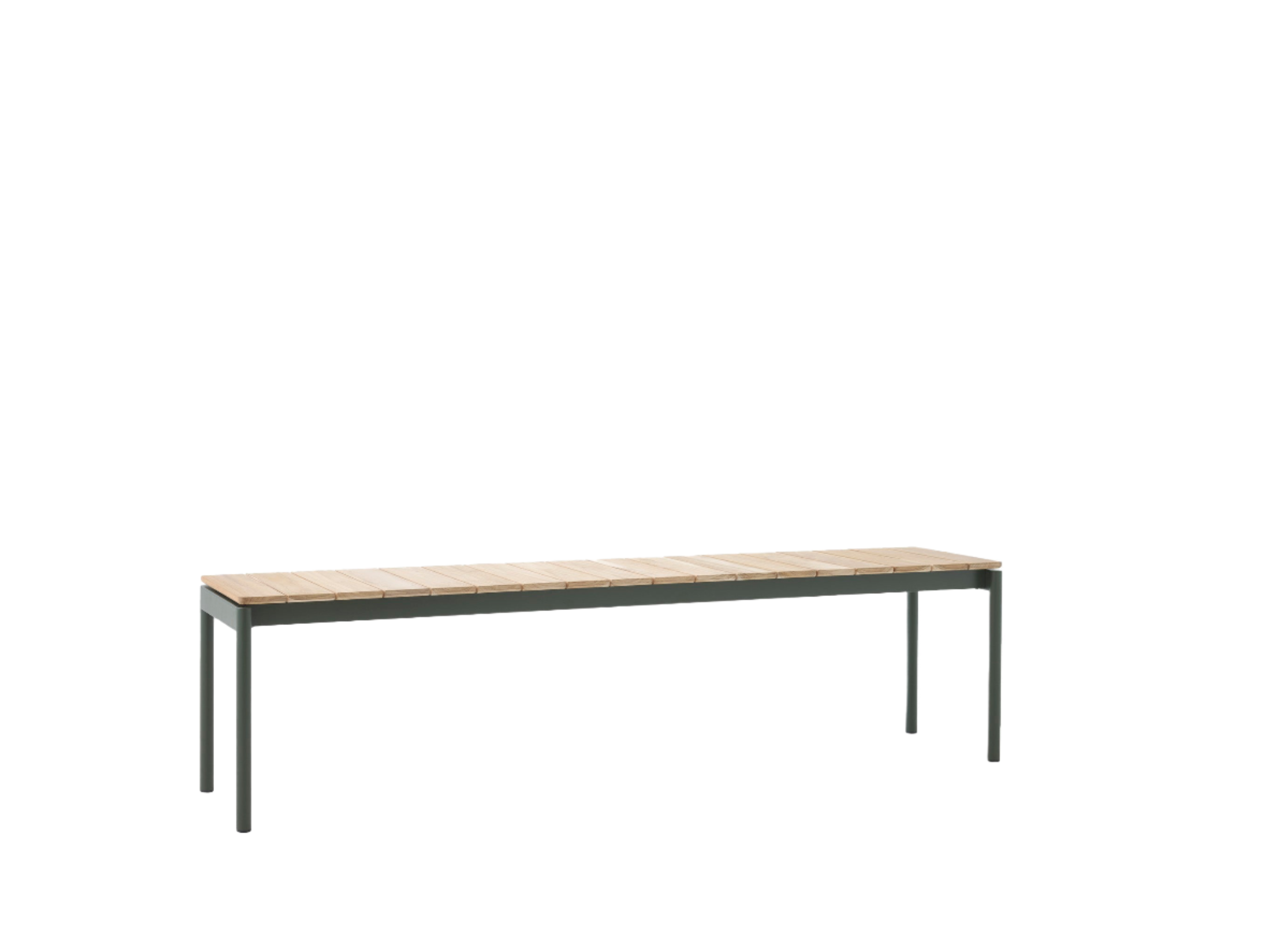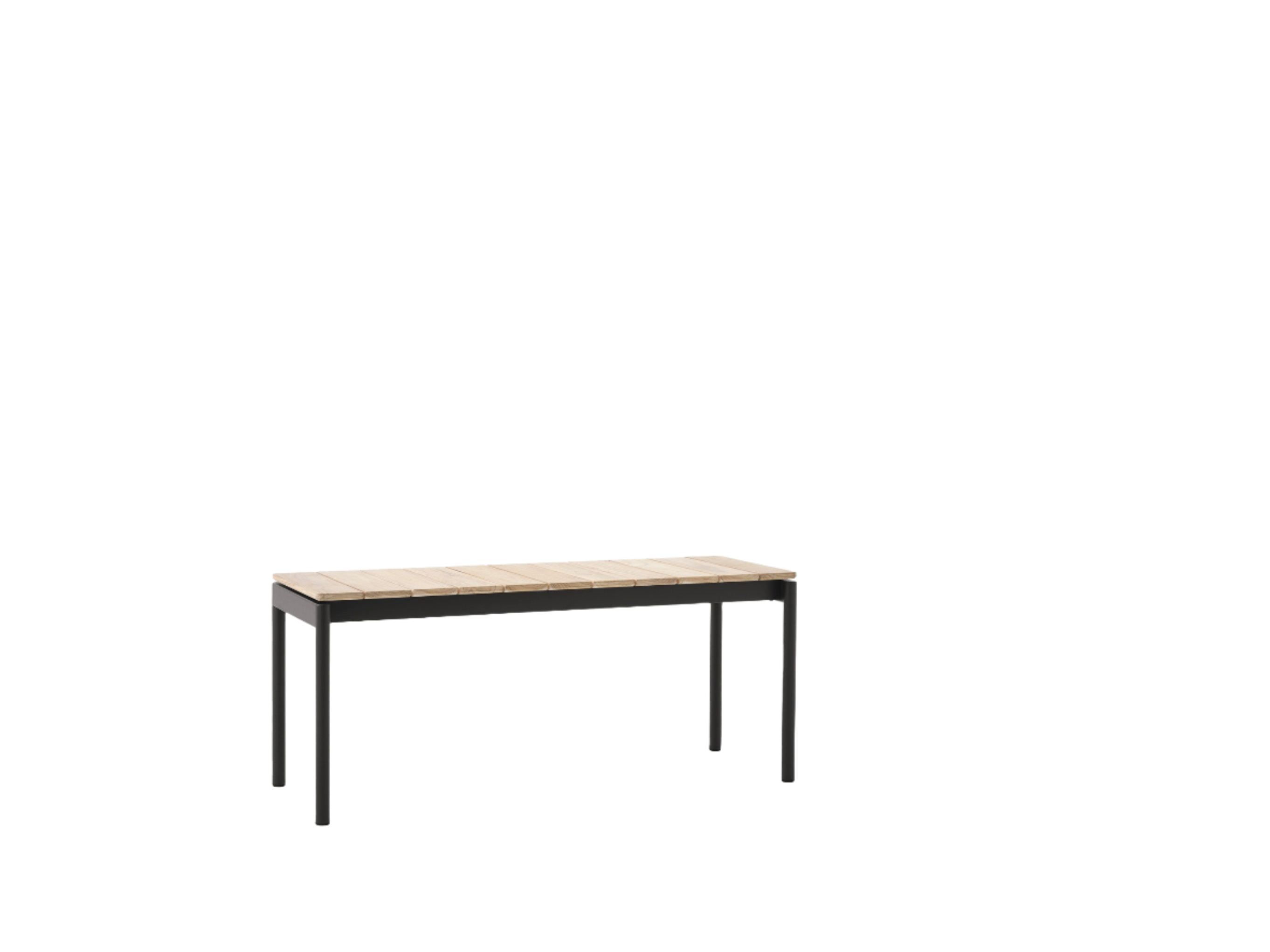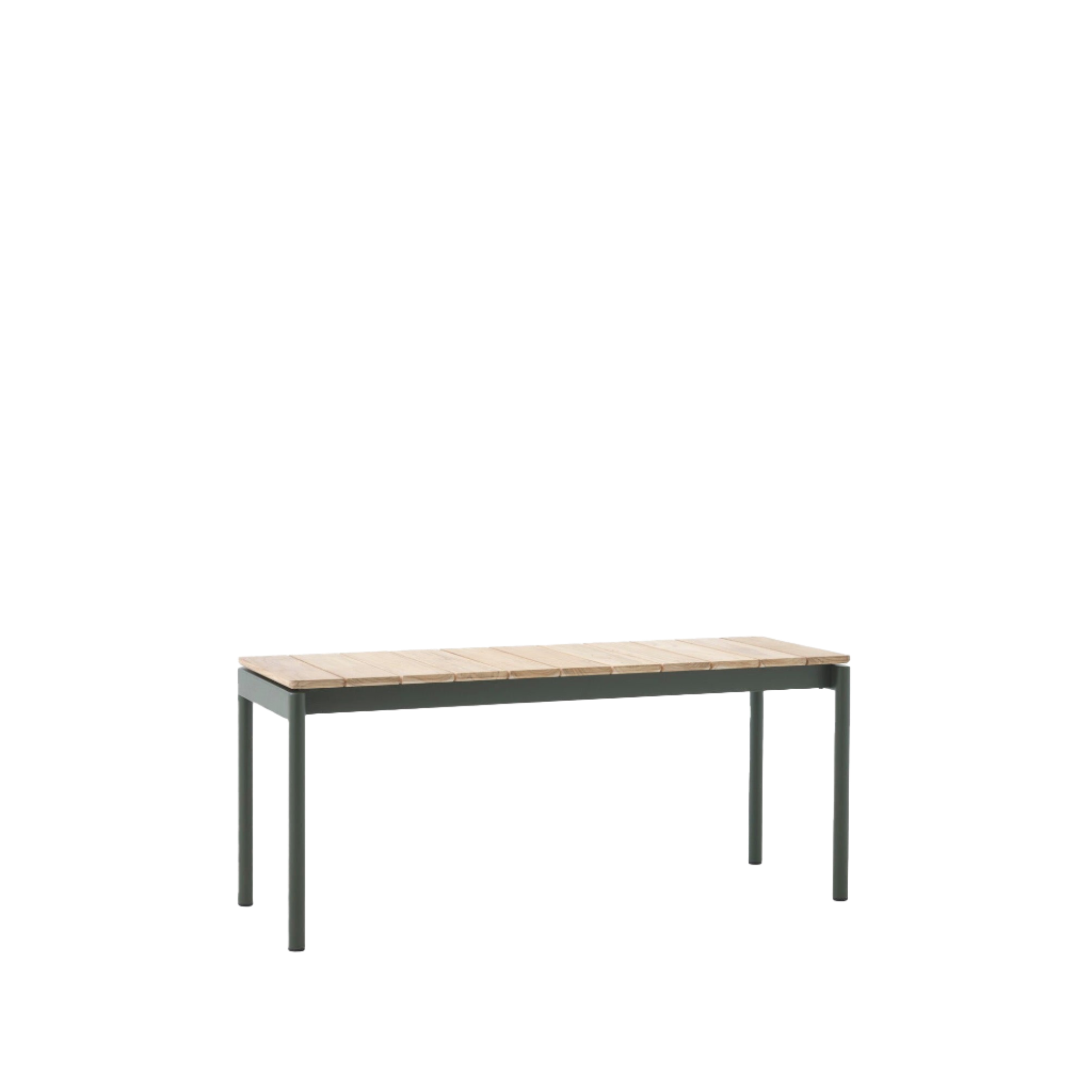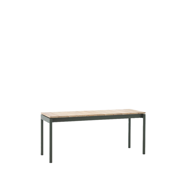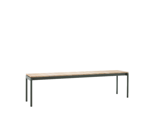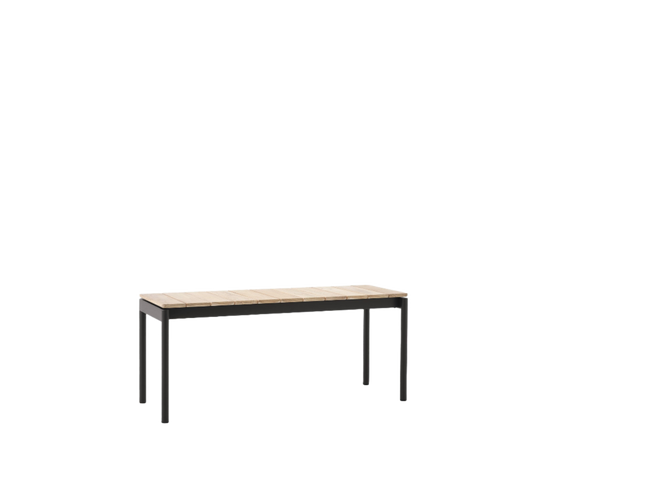 Bench: Untreated Teak wood, Powder coated steel.